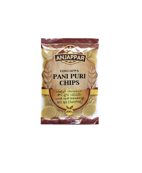 Anjappar Pani Puri Chips (Gol Gappa) bring authentic street-style crunch, perfect for homemade pani puri. This 200g pack ensures crispy, hollow puris every time.