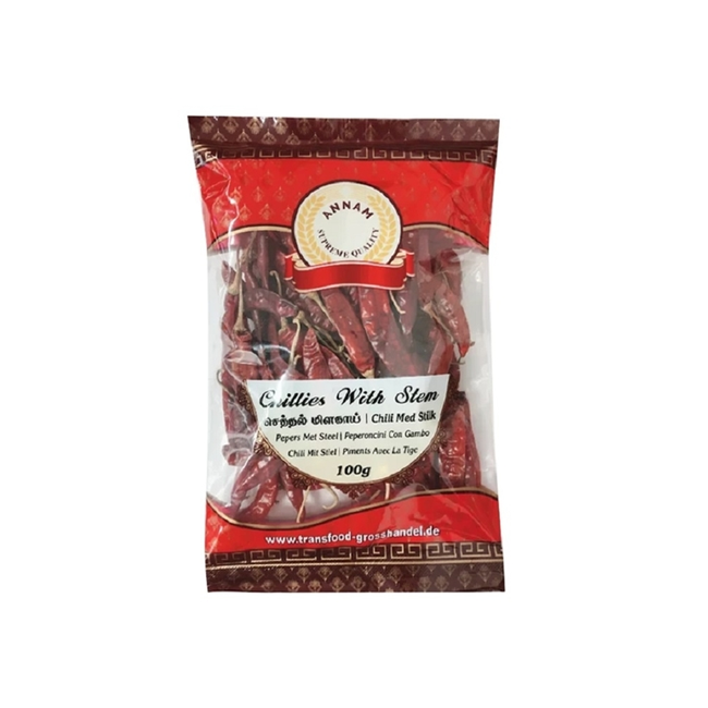 Annam Dried Red Chilli (100gm) adds bold heat and vibrant color to your dishes. Carefully sun-dried for maximum flavor and aroma. Ideal for curries, sauces, and spicy recipes. A pantry essential for authentic, fiery taste.