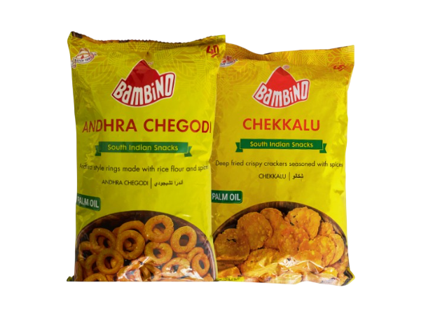 Savor the authentic taste of Andhra Pradesh with the Bambino Combo. This pack features crispy, savory Chekkalu and the uniquely textured, spiral-shaped Chegodi. Made with quality ingredients and traditional recipes, it's the perfect crunchy snack for any time of day.
