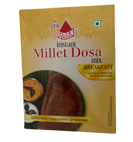 Enjoy quick, healthy, and delicious dosas with Bambino’s Instant Millet Dosa Mix! Made with nutritious millets, this ready-to-use mix requires no fermentation—just add water and cook. Perfect for a wholesome breakfast or snack, it’s gluten-free and packed with natural goodness for your family!