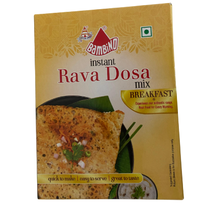 Bambino Instant Rava Dosa Mix (200g) offers a quick and easy way to prepare delicious, crispy Rava Dosas in minutes. Made with premium semolina and authentic spices, this ready-to-cook mix ensures a perfect golden texture every time. Enjoy the authentic South Indian taste at home with no hassle—just add water and cook!