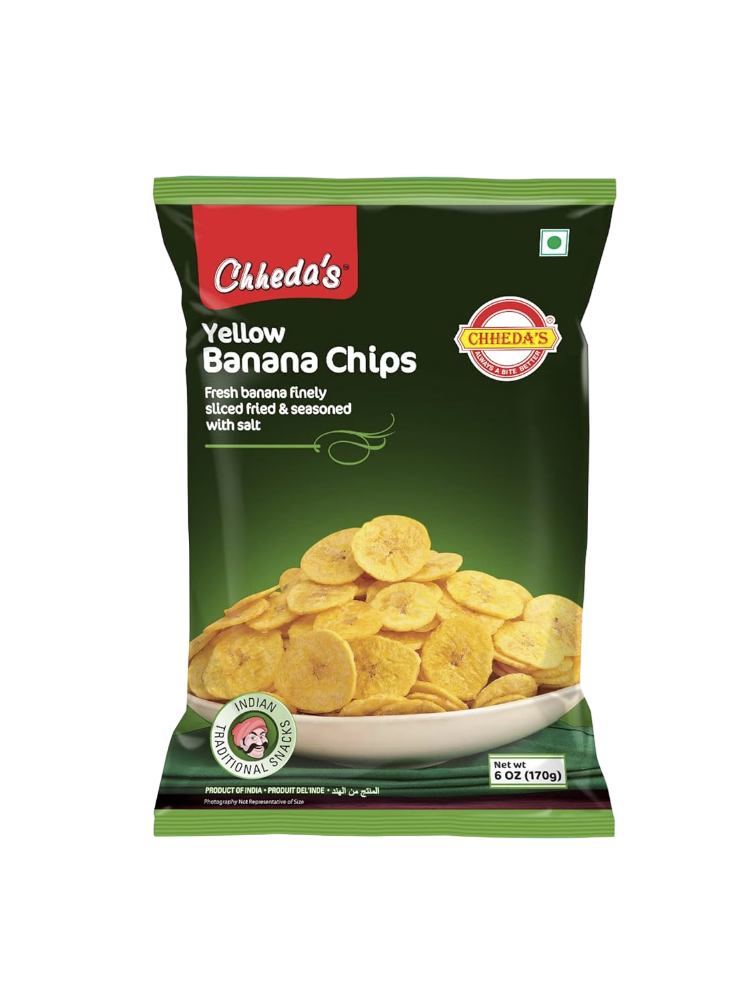 Chhedas Banana Chips Yellow delivers the classic taste of sweet and crunchy banana chips. This 170g pack is made from premium-quality bananas, thinly sliced and fried to golden perfection. Lightly salted for a balanced flavor, these chips are perfect for tea-time, picnics, or on-the-go snacking. Rich in potassium and fiber, they make for a wholesome snack option for families and professionals. With their irresistible crunch and natural sweetness, Chhedas Banana Chips Yellow is a timeless favorite that satisfies your cravings anytime.