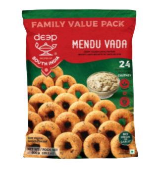 Enjoy the authentic taste of South India with Deep Mendu Vada Family Pack (800g). These crispy, golden lentil doughnuts are perfectly seasoned and ready to heat and serve. Ideal for a quick snack or a delicious meal, they pair perfectly with chutney and sambar. Made with high-quality ingredients, bringing tradition to your table with every bite.