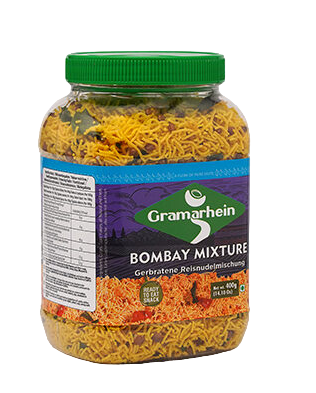 Gramarhein Bombay Mixture is a spicy, crunchy mix of sev, nuts, and lentils, perfect for snacking. This 300g pack brings authentic Mumbai flavors.