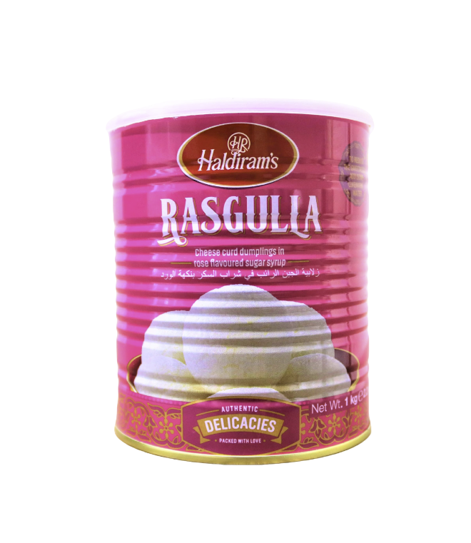 Haldiram Rasgulla Tin (1kg) features soft, melt-in-your-mouth cottage cheese balls soaked in lightly sweetened syrup. This traditional Indian dessert is perfect for festivals, parties, or personal indulgence. The 1kg tin ensures freshness and convenience, making it an ideal choice for families and gatherings. Haldiram Rasgulla delivers authentic taste and texture, bringing the joy of Indian festivities to your home. Add this timeless dessert to your pantry for sweet moments.