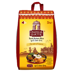 India Gate Surti Kolam Rice is a premium-quality, aromatic rice known for its delicate flavor and soft texture. Sourced from the finest grains, it is perfect for daily meals, biryanis, and traditional Indian dishes. This 5kg pack ensures convenience and long-lasting freshness for your kitchen. Enjoy the authentic taste of Kolam rice, a favorite in South Indian and Maharashtrian cuisine.