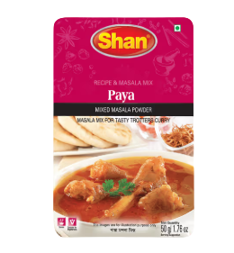 Enhance your traditional Pakistani paya (trotters) curry with Shan’s aromatic Paya Masala. This 48g blend of premium spices delivers a rich, flavorful taste with every use. Perfectly balanced for a bold, savory dish, it simplifies cooking while ensuring authentic results. Enjoy restaurant-quality paya curry at home with Shan’s trusted spice mix!