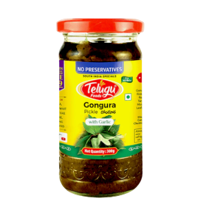 Enjoy the authentic taste of Andhra with Telugu Gongura Garlic Pickle. Made with fresh gongura leaves, garlic, and traditional spices, this pickle delivers a perfect balance of tangy and spicy flavors. It pairs deliciously with rice, rotis, or snacks, adding a zesty twist to every bite. Experience the rich heritage of Telugu flavors in every spoonful!